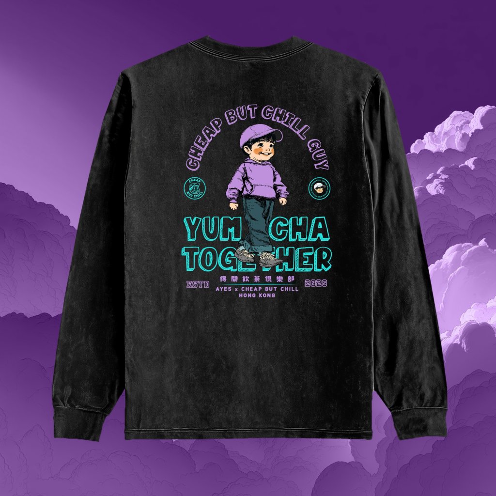 AYES X Cheap but Chill Long Sleeve water washed Tee (Black)